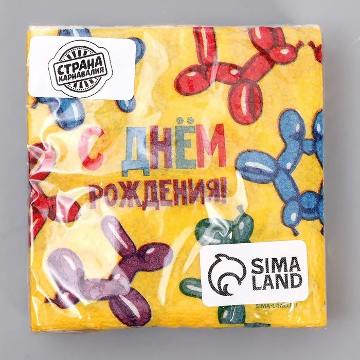 Салфетки бумажные однослойные «С днём рождения. Весёлые фигуры», 24 × 24 см, 20 шт. — Характеристики