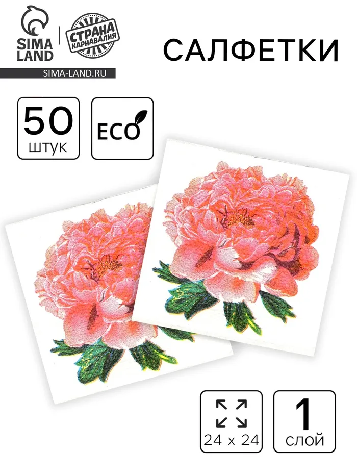 Салфетки бумажные «Пион розовый», 24 х 24 см, 50 шт — Характеристики