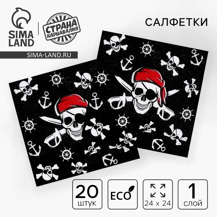 Салфетки бумажные «Пират», однослойные, 24х24 см, набор 20 шт. — Характеристики