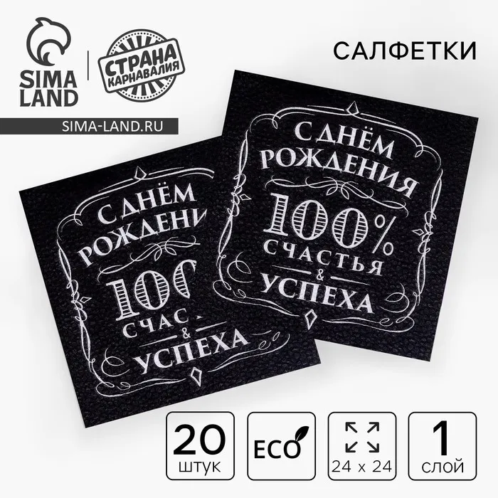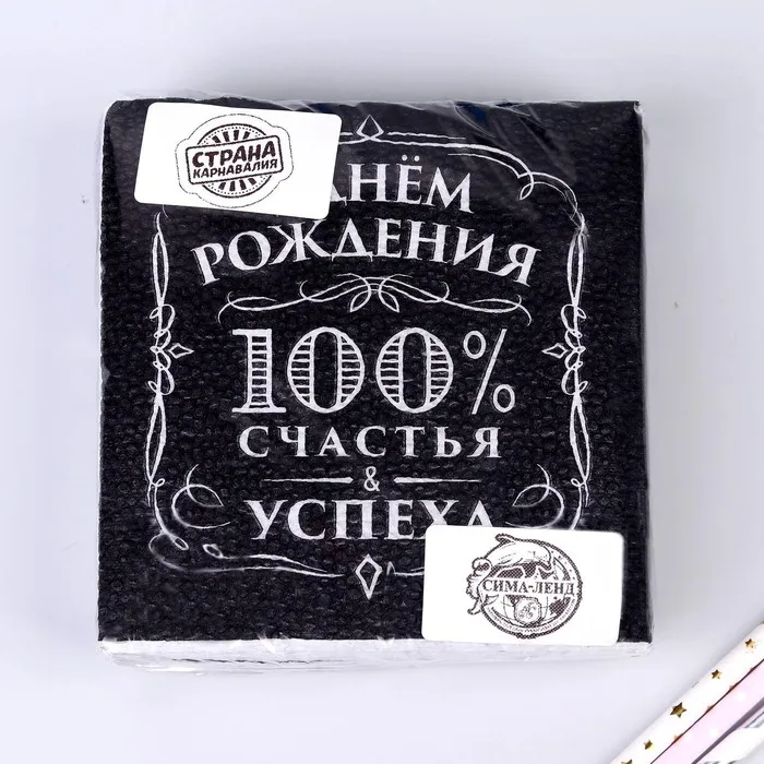 Салфетки бумажные «С днём рождения», 100% счастья, однослойные, 24х24 см, набор 20 шт. — Характеристики