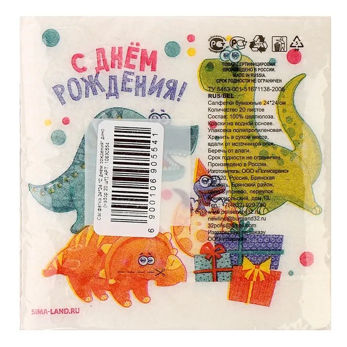 Салфетки бумажные однослойные «С днём варенья!», 25×25, 20 шт.