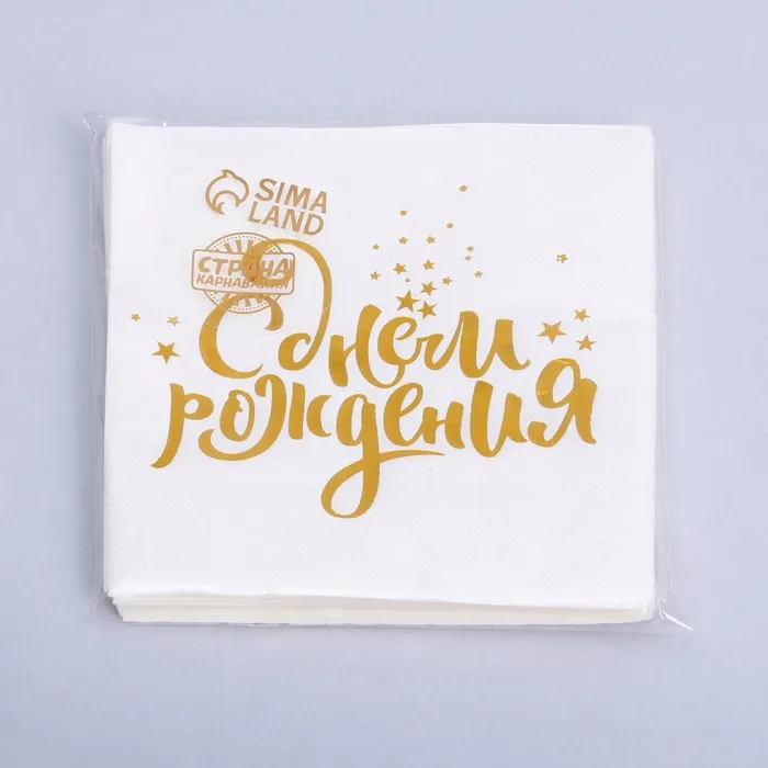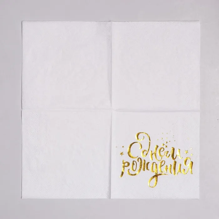 Салфетки бумажные «С днём рождения», 25х25 см, 20 шт., золотое тиснение, белый фон — Характеристики