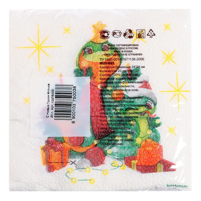 Салфетки бумажные «С Новым годом: ёлочка», однослойные, 24 х 24 см, 20 шт — Характеристики
