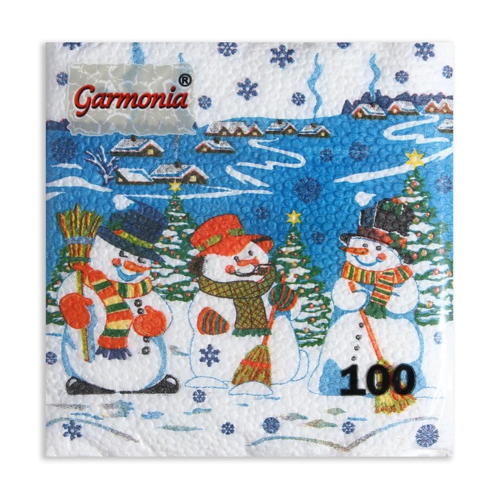 Новогодние сервировочные бумажные салфетки бренда Гармония цвета с рисунком "Снеговичок" - это отличное украшение для вашего праздничного новогоднего стола. Идеально подойдут как для сервировки, так и в качестве декора и украшения как в домашних условиях, так и на больших праздничных мероприятиях. Салфетки с уникальным рисунком будут хорошим подарком для родных и близких. Данные салфетки можно использовать так же для декупажа и коллажей.