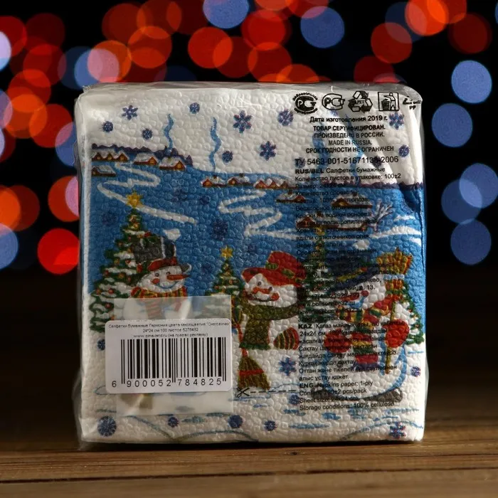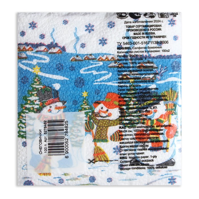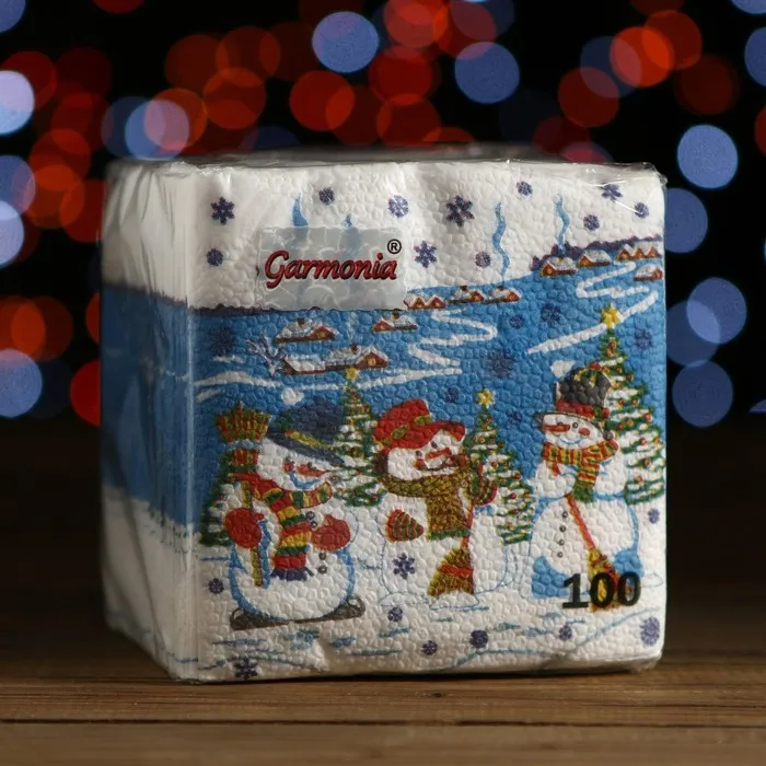 Салфетки бумажные «Снеговички», 24×24 см 100 листов — Характеристики