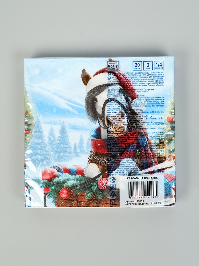 Салфетки бумажные трёхслойные «Красавица лошадка», 33×33, 20 шт. — Характеристики