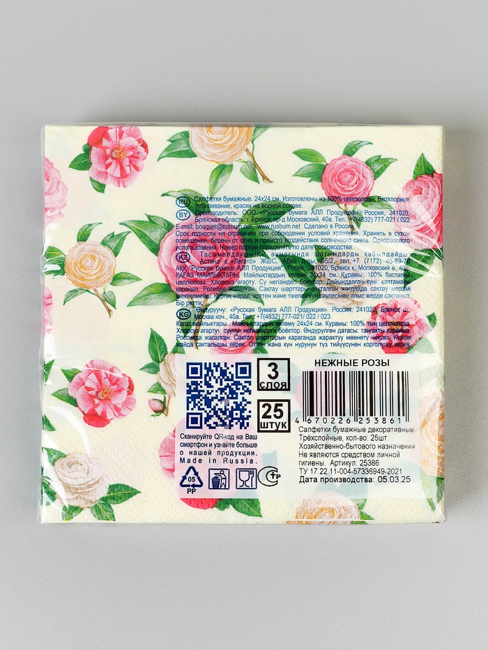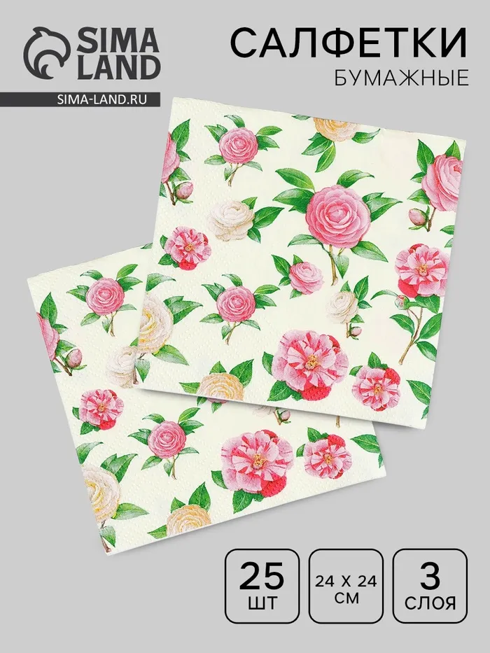 Салфетки бумажные трёхслойные «Нежные розы», 24 х 24, 25 шт — Характеристики