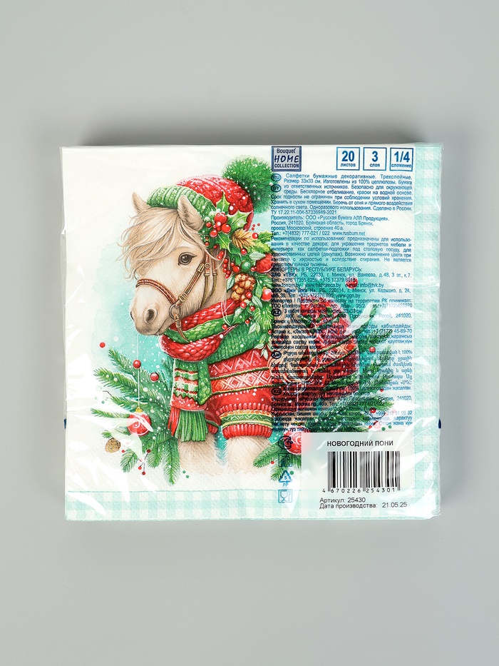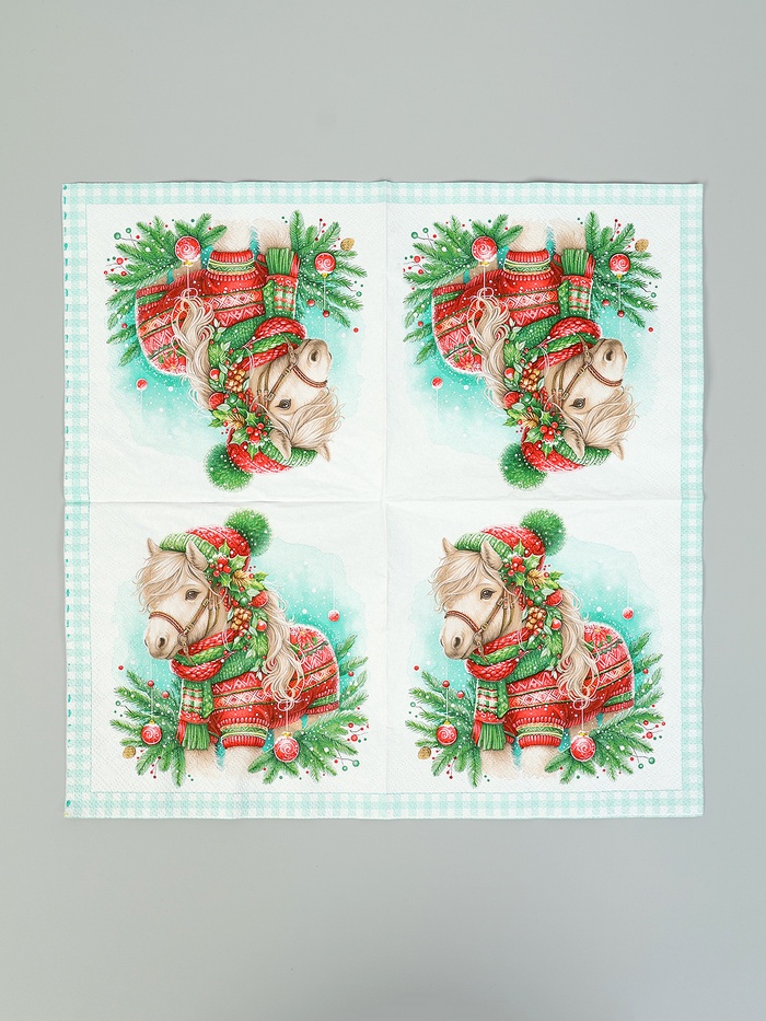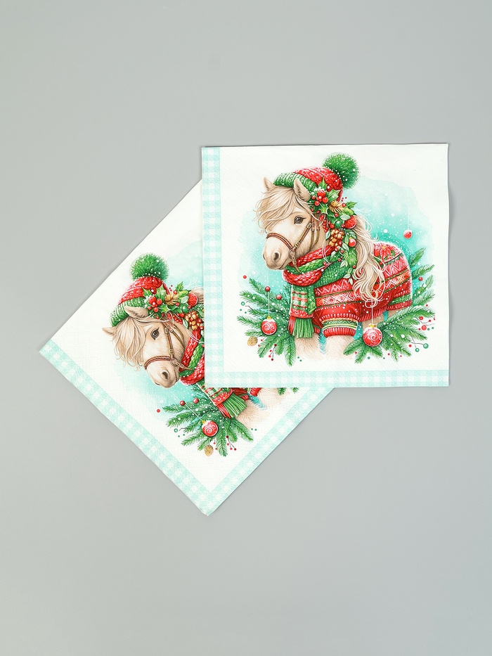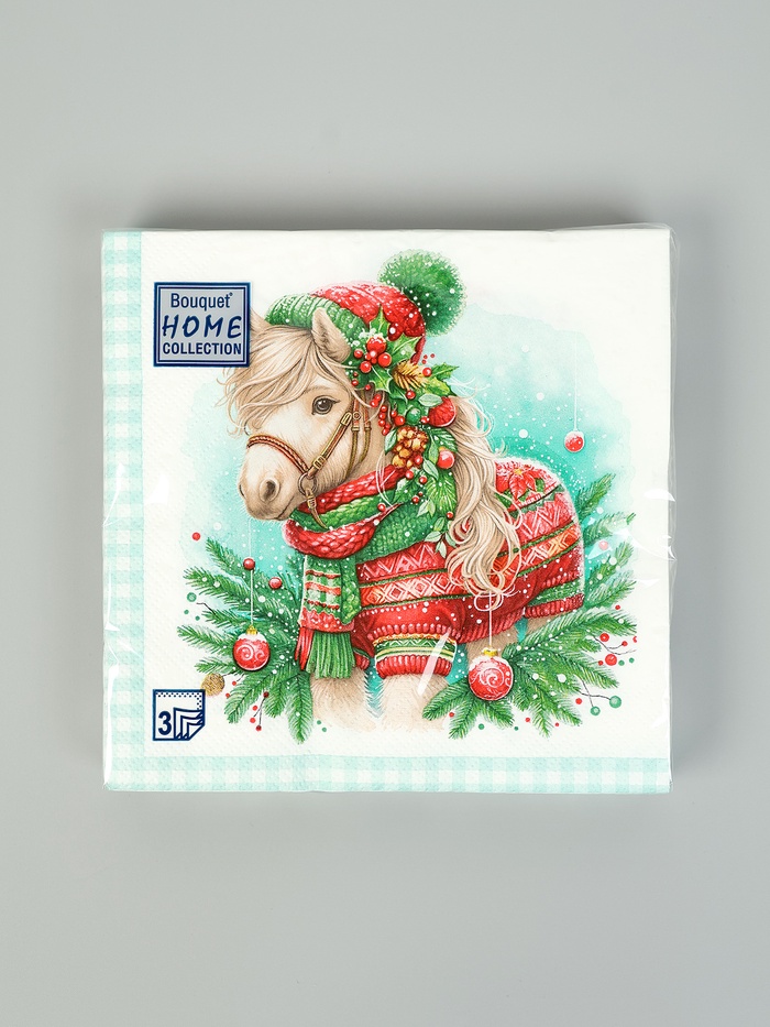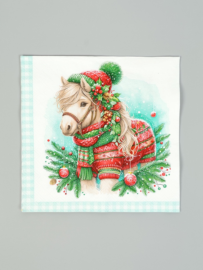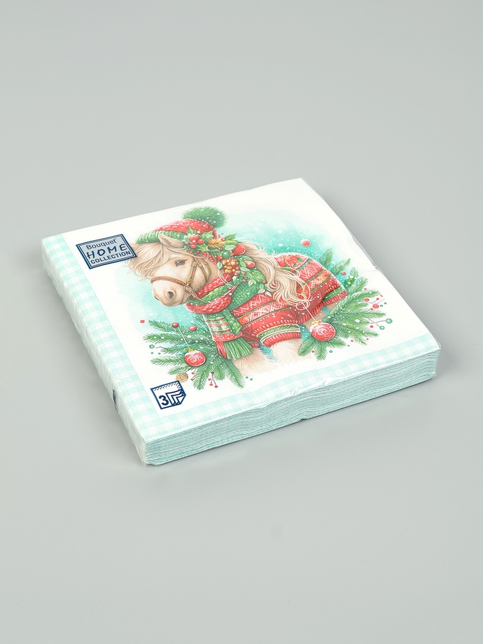 Салфетки бумажные трёхслойные «Новогодний пони», 33×33, 20 шт. — Характеристики