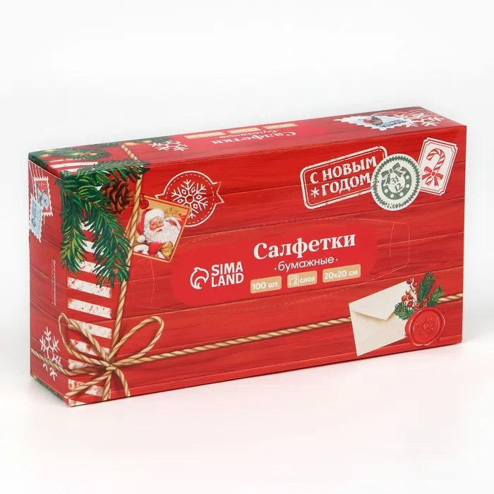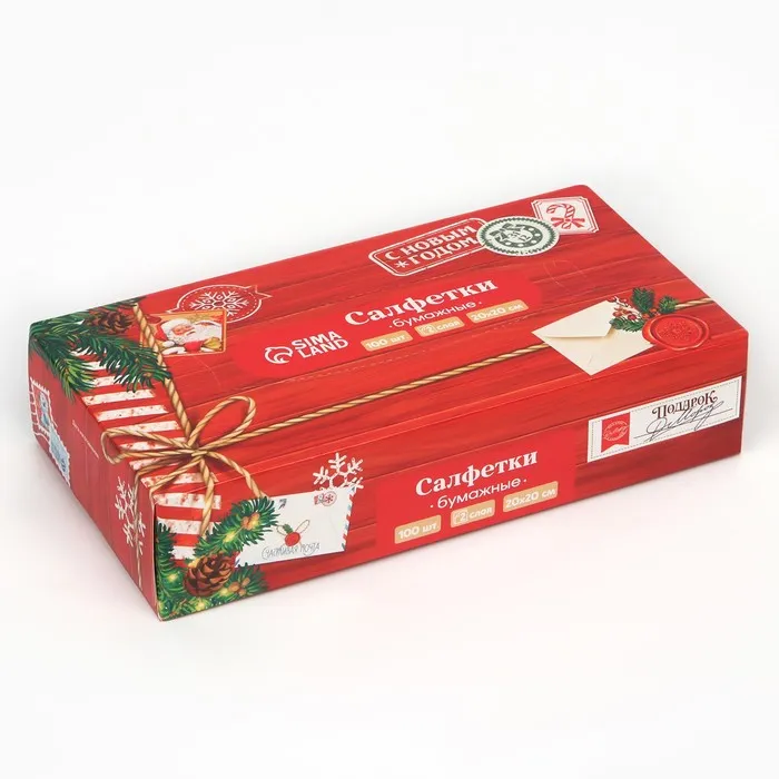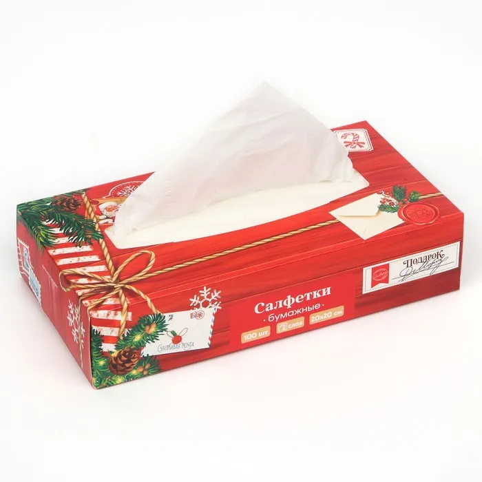Салфетки бумажные в коробке «Новый год! Новогодняя посылка», 100 шт, двухслойные — Характеристики