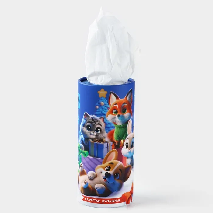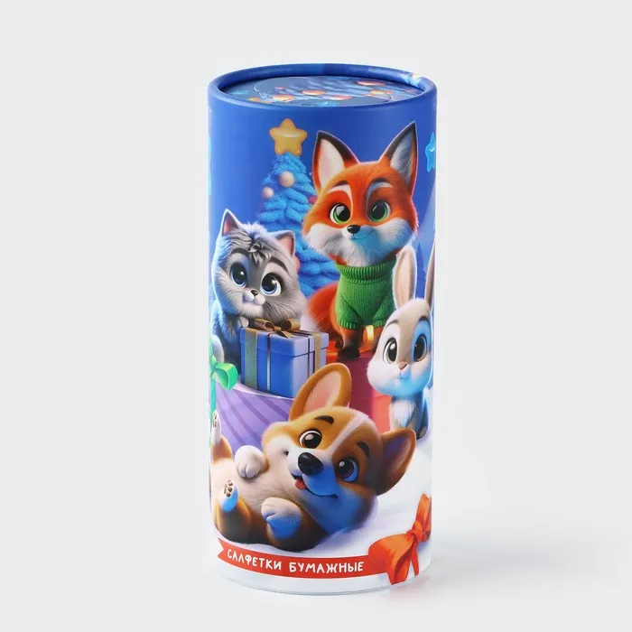 Салфетки бумажные в тубусе «Зверюшки», 50 шт., двухслойные