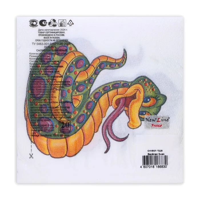 Салфетки бумажные «Весёлая змея» 2 слоя, 33×33 см, 20 шт. — Характеристики