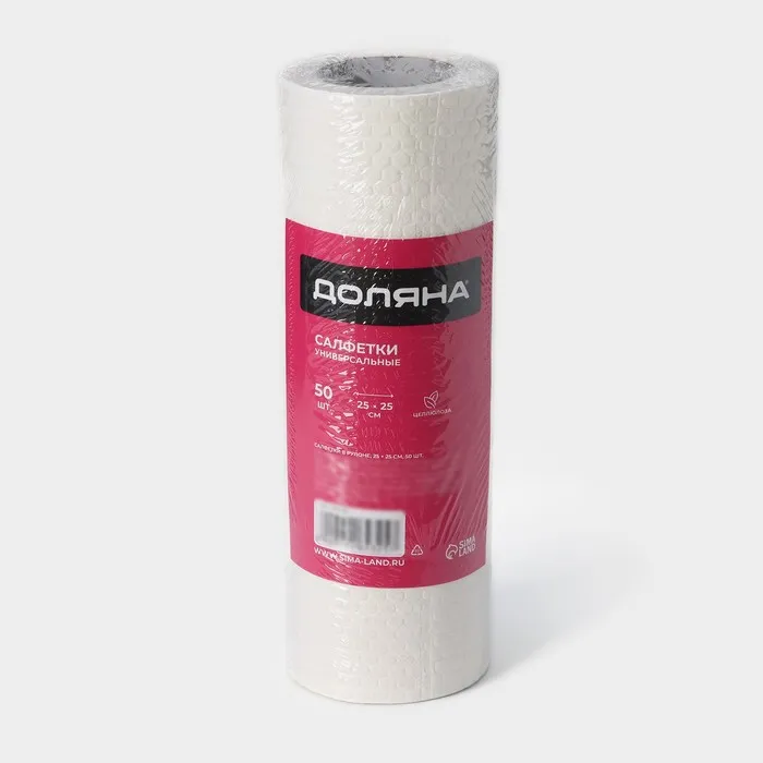 Салфетки изготовлены из прочного и мягкого материала, поэтому могут применяться как в сухом, так и во влажном виде с любыми моющими средствами;Каждый их лист легко отделяется от рулона благодаря линии отрыва листа;Универсальное средство в одном рулоне заменит сразу - полотенце для посуды, салфетку для мебели или для стёкол.