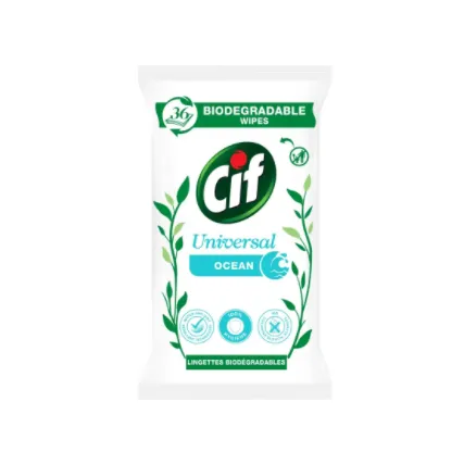Биоразлагаемые универсальные салфетки CIF подходят для очистки многих домашних поверхностей. Их можно использовать как в ванной, так и на кухонном обеденном столе. Утилизируйте упаковку как пластиковую упаковку, а использованную ткань как биологические отходы.