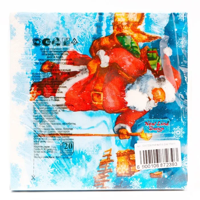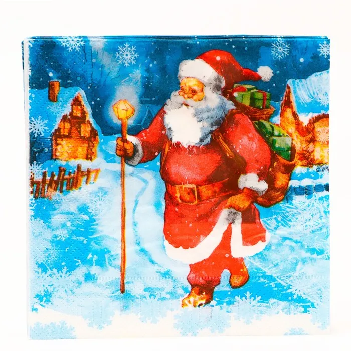 Новогодние бумажные салфетки с рисунком "Дед мороз" - это отличное украшение для вашего праздничного новогоднего стола. Идеально подойдут как для сервировки, так и в качестве декора и украшения как в домашних условиях, так и на больших праздничных мероприятиях. Салфетки с уникальным рисунком будут хорошим подарком для родных и близких. Данные салфетки можно использовать так же для декупажа и коллажей.
