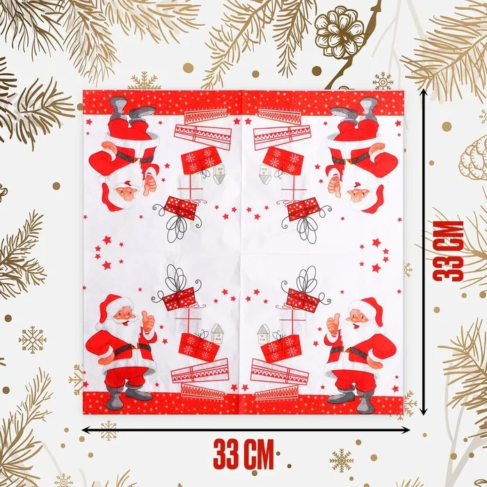 Салфетки новогодние бумажные «Дед Мороз и подарки», 33 × 33 см, набор 20 шт. — Характеристики
