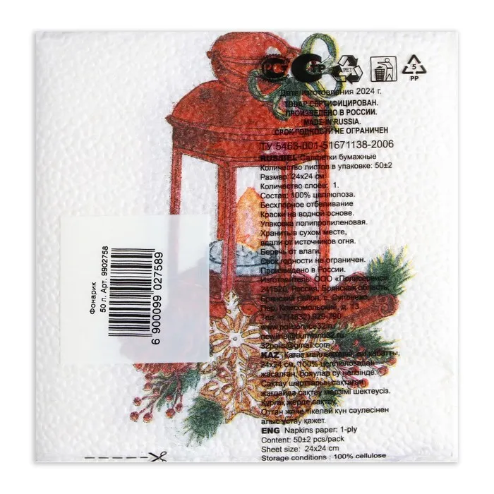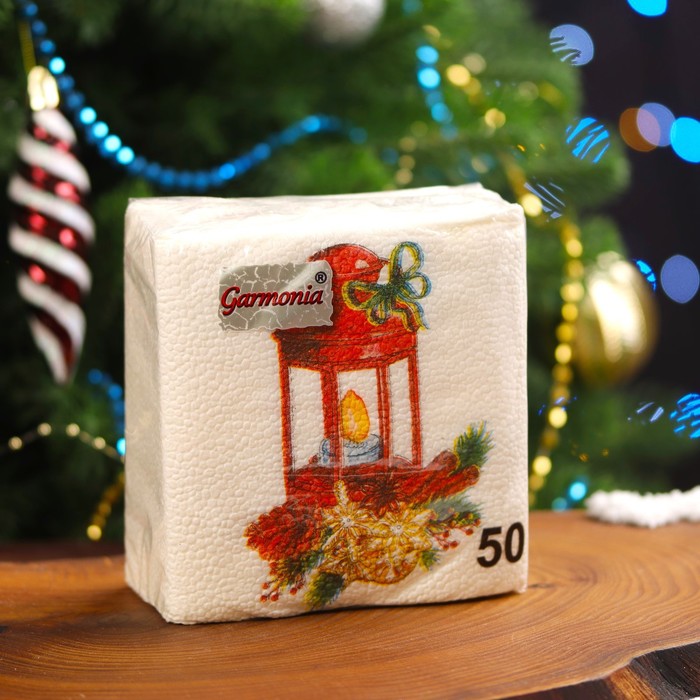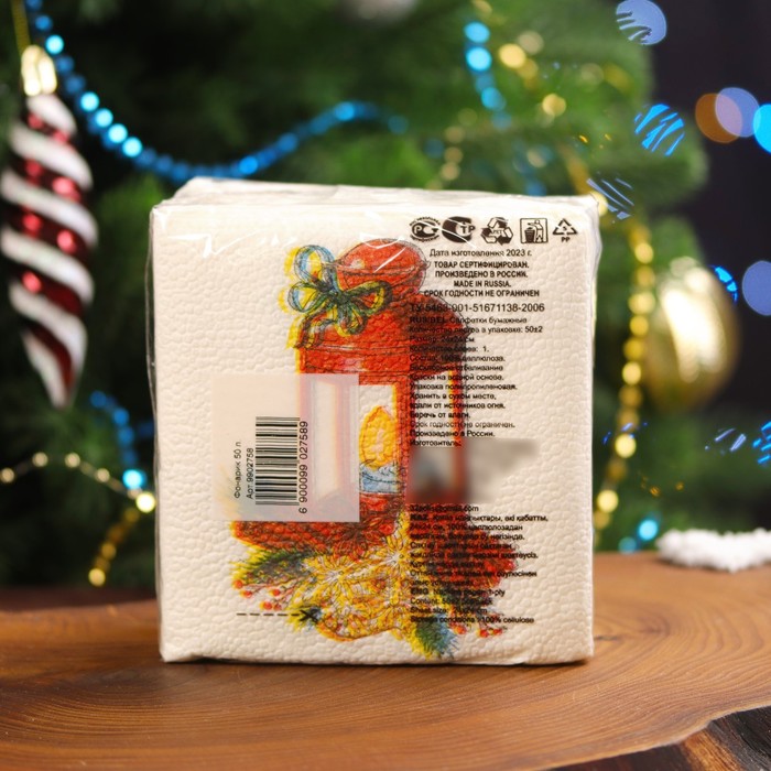 Салфетки новогодние бумажные «Фонарик» 1 слой, 24×24 см, 50 шт. — Характеристики