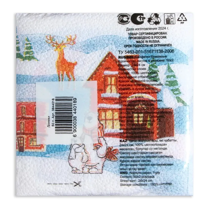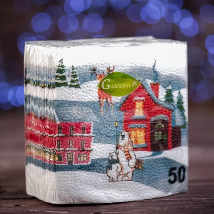 Салфетки новогодние бумажные Гармония цвета «Домики», 24х24 см, 50 шт — Характеристики