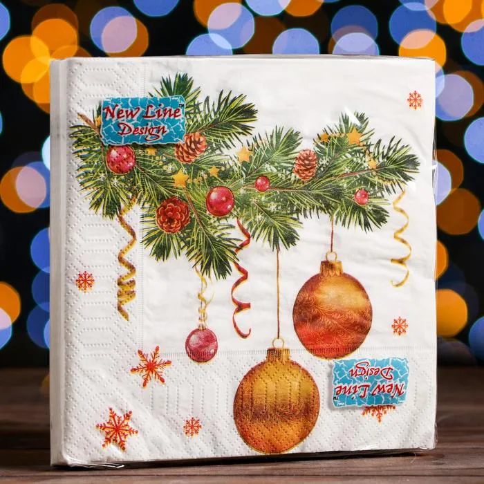 Если вы хотите, красиво и со вкусом украсить новогодний стол — салфетки с тематическим принтом обязательно займут на нём своё почётное место. Эта деталь придётся по душе всем гостям, которые непременно почувствуют праздничную и уютную атмосферу. Качественные трехслойные бумажные салфетки изготовлены из 100% целлюлозы.