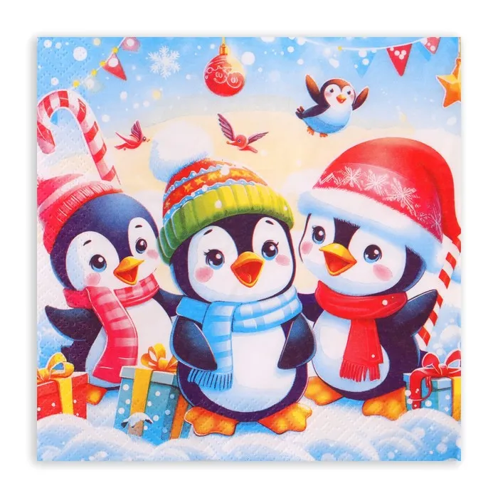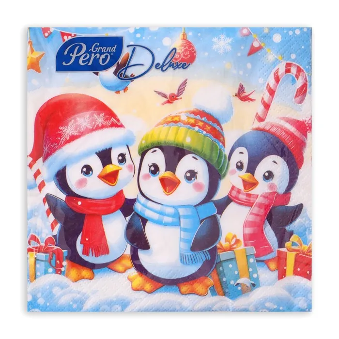 Салфетки новогодние бумажные GrandPero Deluxe «Пингвины», 3 слоя, 33х33 см, 20 шт — Характеристики