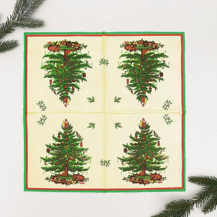 Сервировка стола дело ответственное. Особенно в самую волшебную ночь года. Салфетки новогодние бумажные «Ёлочка с подарками», набор 20 шт. украсят любой зимний праздник и создадут по-домашнему уютную новогоднюю атмосферу.