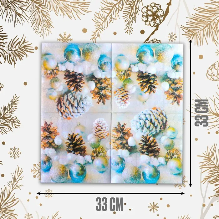 Салфетки новогодние бумажные «Ёлочные игрушки», 33×33 см, набор 20 шт — Характеристики