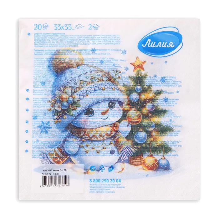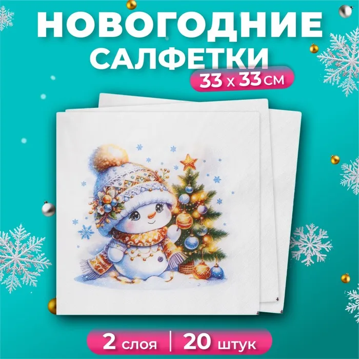 Салфетки новогодние бумажные Лилия «Няшка», 2 слоя, 33х33 см, 20 шт — Характеристики