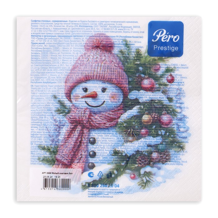 Салфетки новогодние бумажные «Милый снеговик», 3 слоя, 33×33, 20 шт. — Характеристики