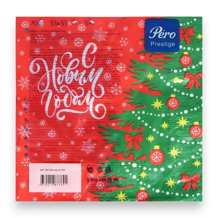 Салфетки новогодние бумажные Pero Prestige «Ёлочка», 3 слоя, 33х33 см, 20 шт — Характеристики
