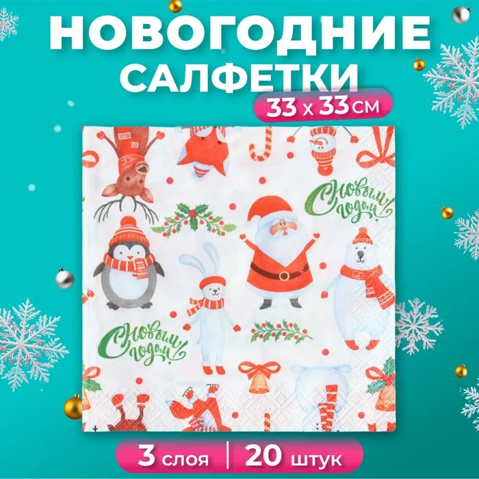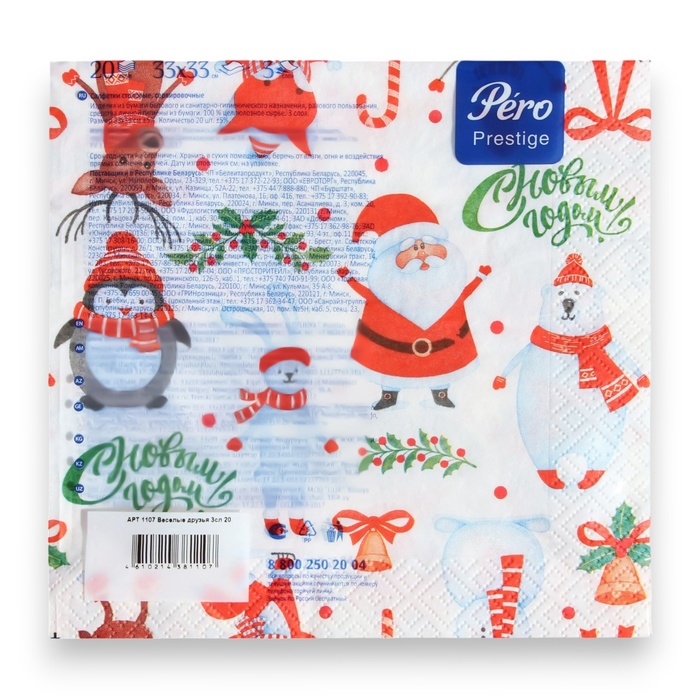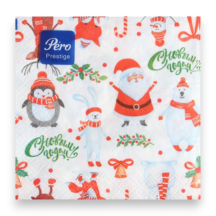 Салфетки новогодние бумажные Pero Prestige «Веселые друзья», 3 слоя, 33х33 см, 20 шт — Характеристики