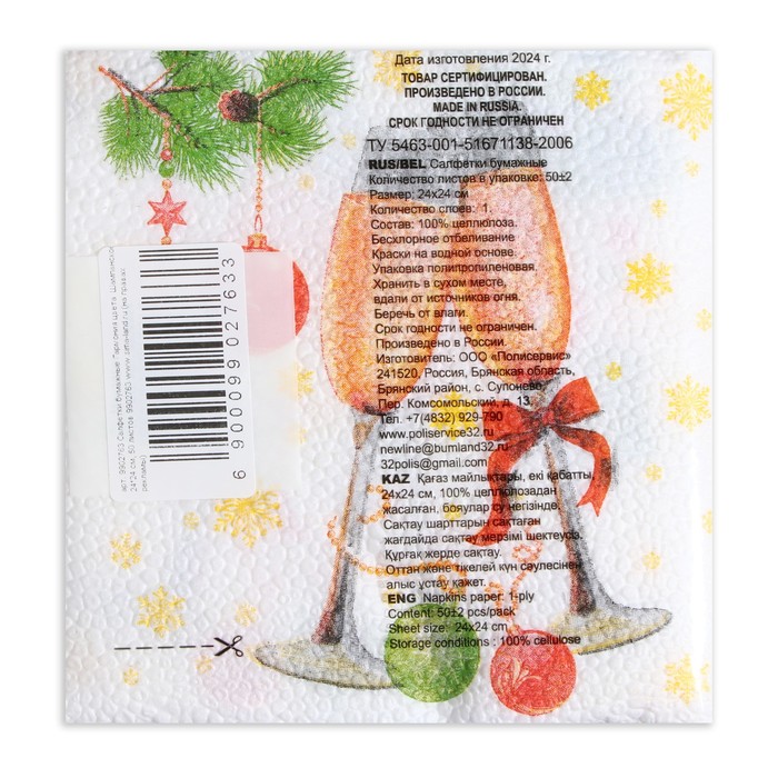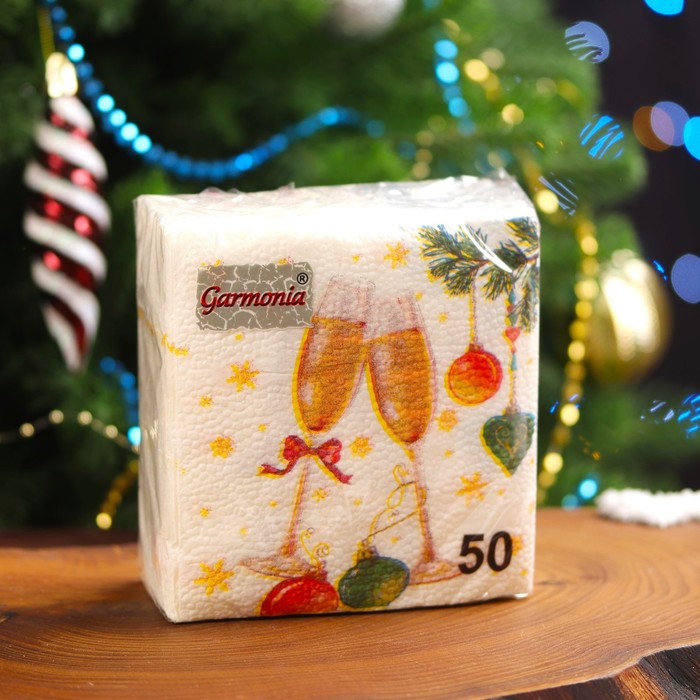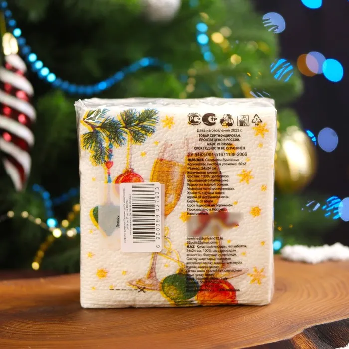 Салфетки новогодние бумажные «Шампанское» 1 слой, 24×24 см, 50 шт. — Характеристики