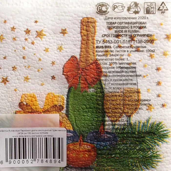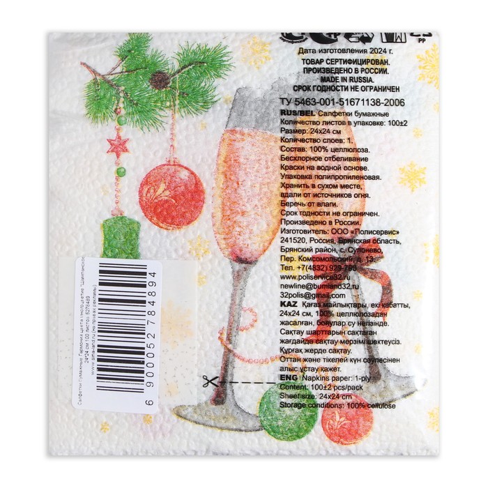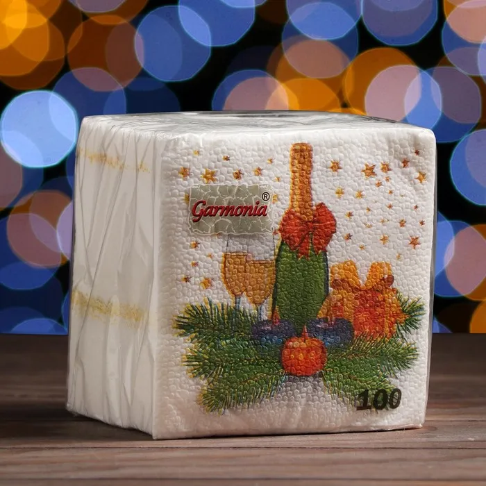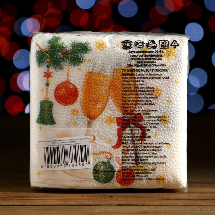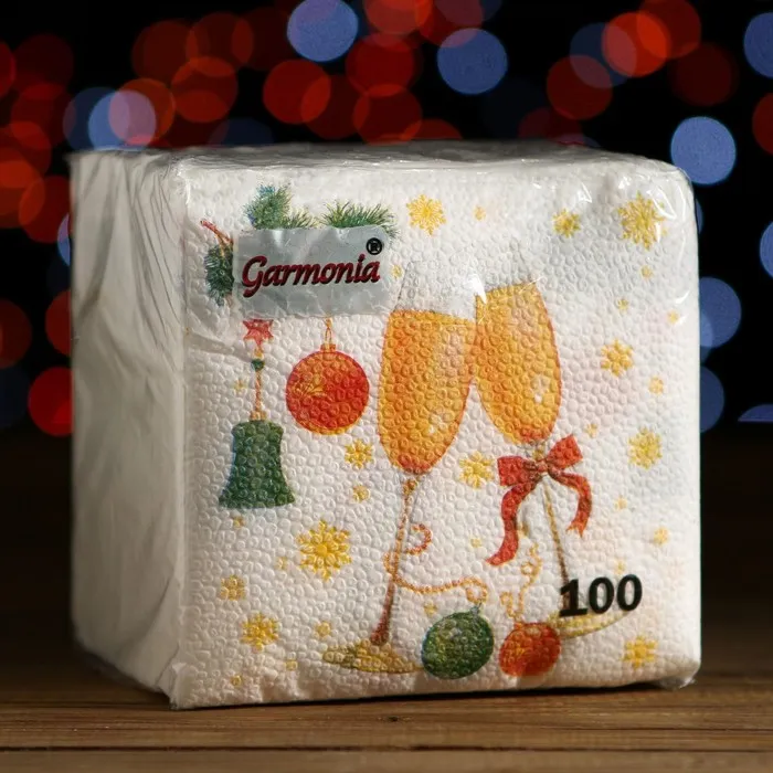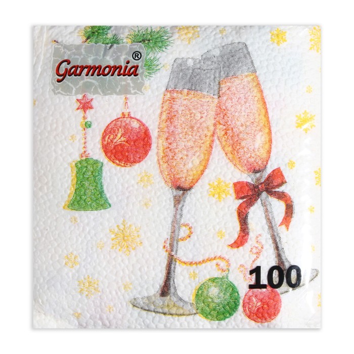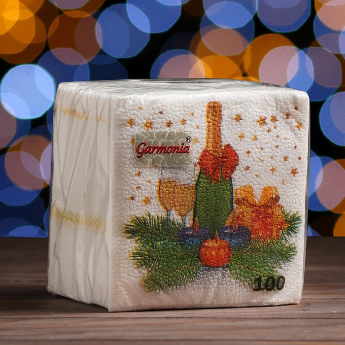 Салфетки новогодние бумажные «Шампанское», 24×24 см, 100 шт. — Характеристики