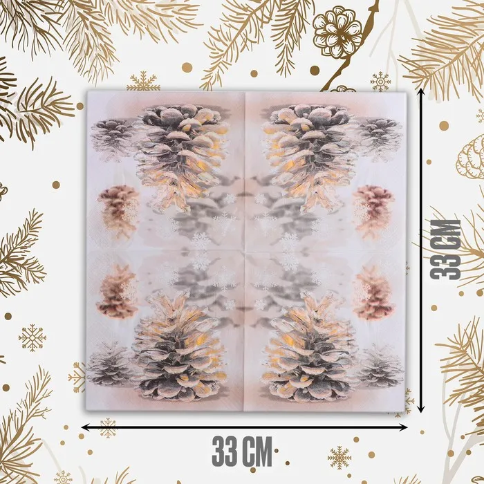 Салфетки новогодние бумажные «Шишки», 33×33 см, набор 20 шт. — Характеристики