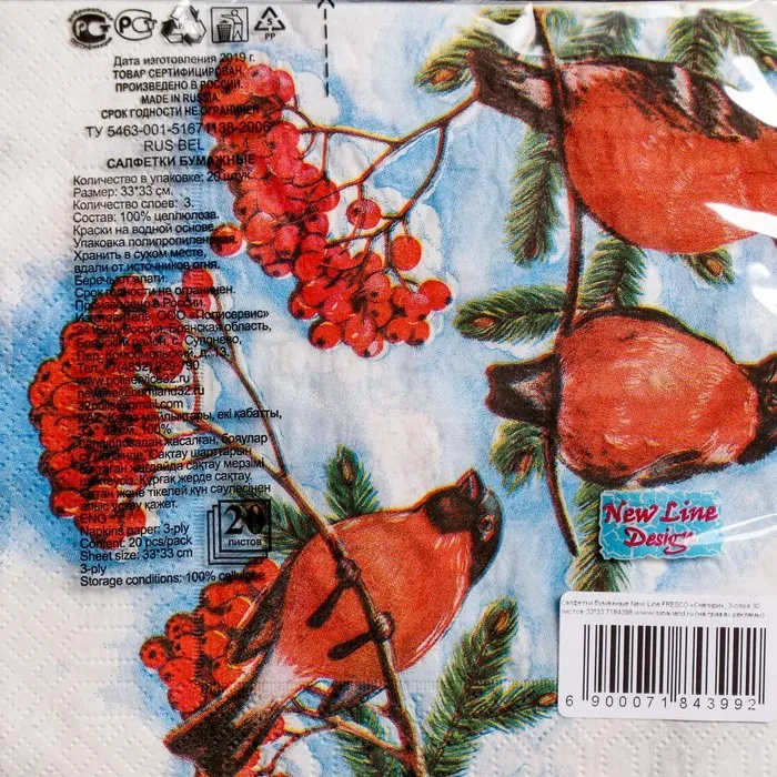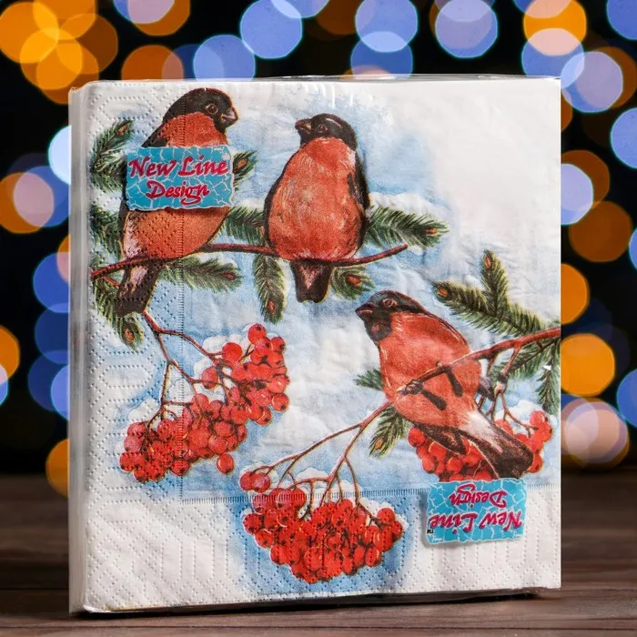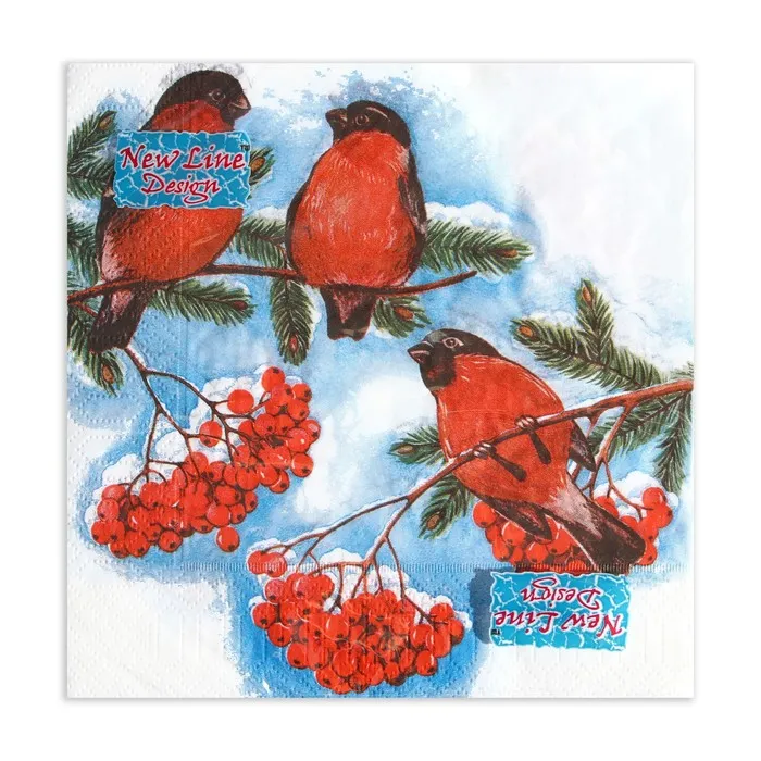 Салфетки новогодние бумажные «Снегири», 3 слоя, 33×33 см, 20 шт. — Характеристики
