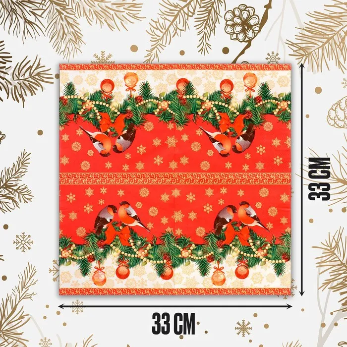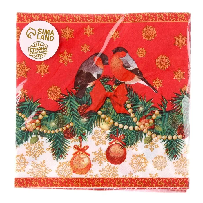 Бумажные салфетки «Снегири» помогут создать атмосферу праздника за вашим столом. В наборе 20 салфето, украшенных новогодним рисунком. Эти салфетки идеально подойдут для праздничных мероприятий в зимний сезон, таких как Новый год, рождественские вечеринки или семейные ужины. Яркий дизайн добавит праздничного настроения вашим гостям.