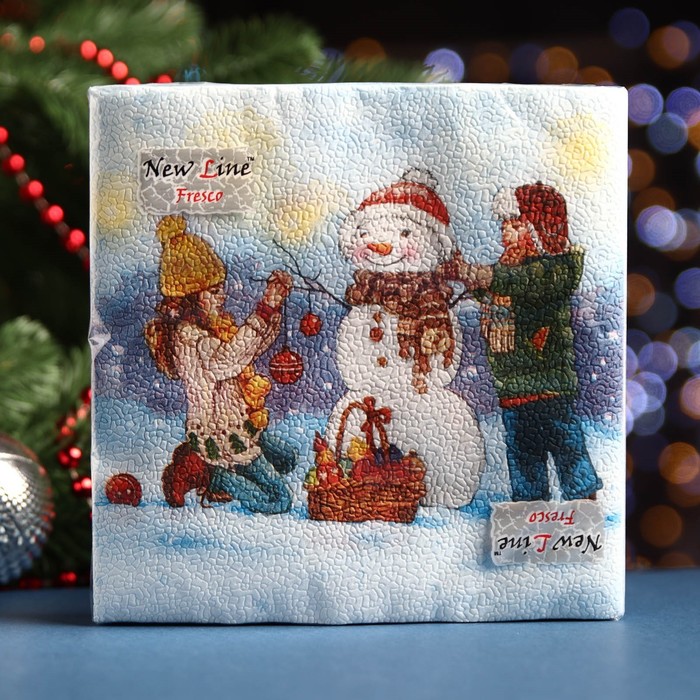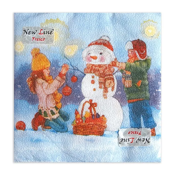 Салфетки новогодние бумажные «Снеговик и дети», 2 слоя, 33×33 см, 20 шт.