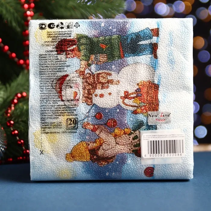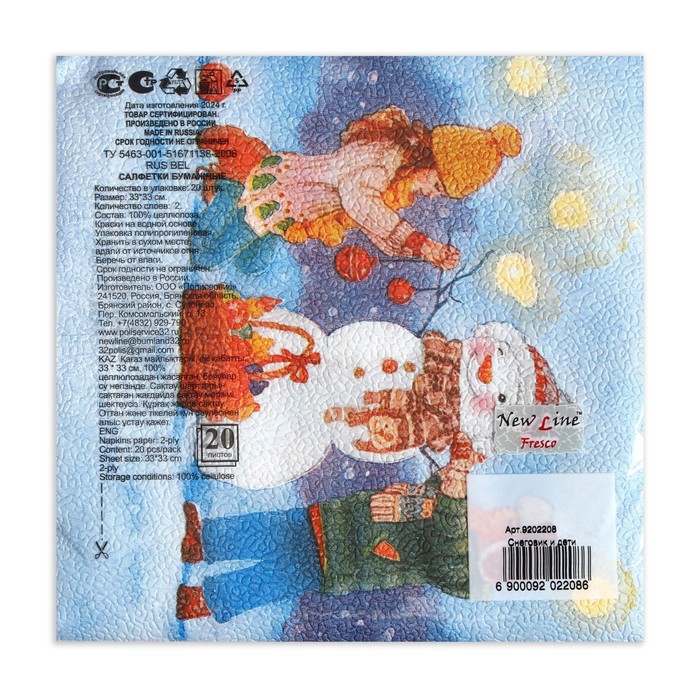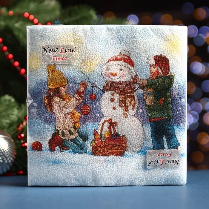 Салфетки новогодние бумажные «Снеговик и дети», 2 слоя, 33×33 см, 20 шт. — Характеристики