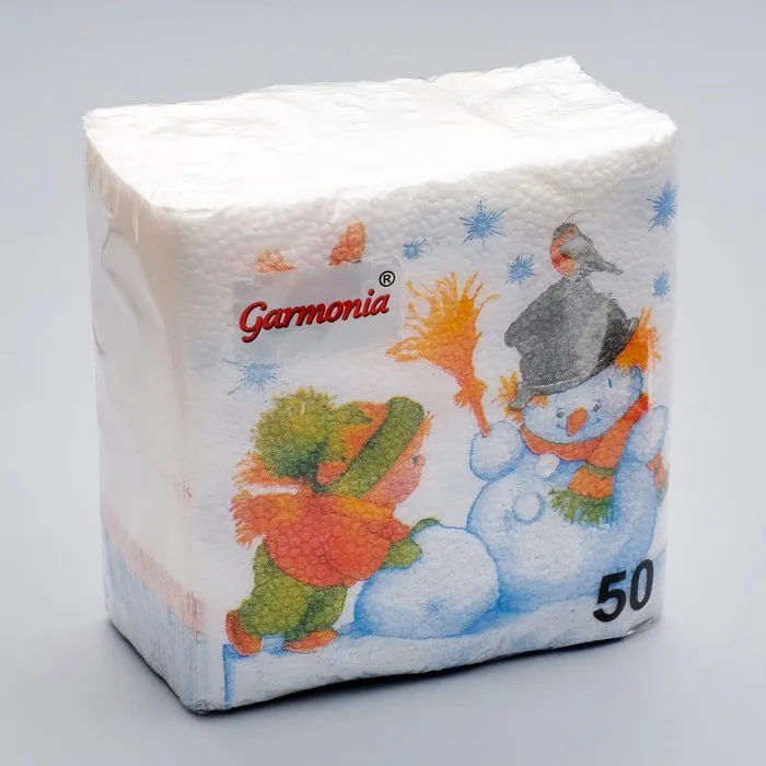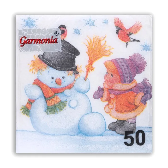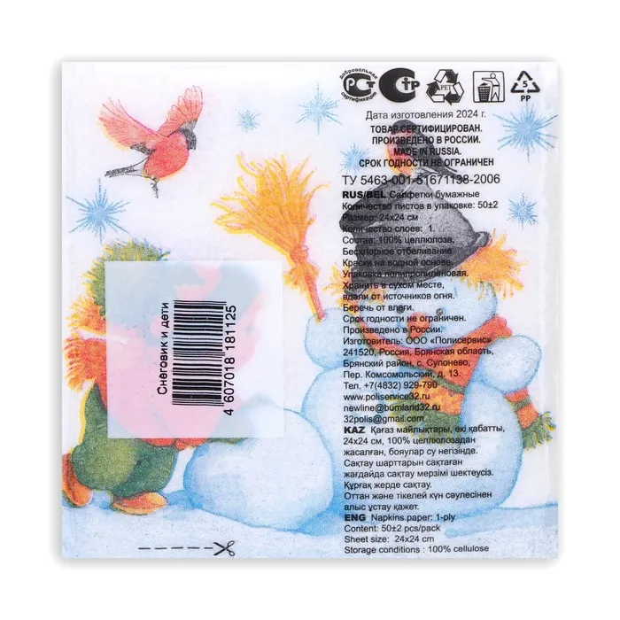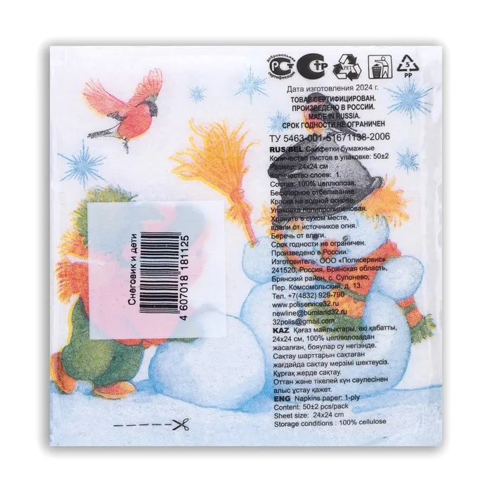 Салфетки новогодние бумажные «Снеговик и дети», 24×24 см, 50 шт. — Характеристики