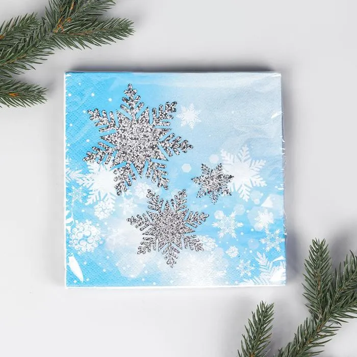 Салфетки новогодние бумажные «Снежинки», 33х33 см, набор 12 шт.