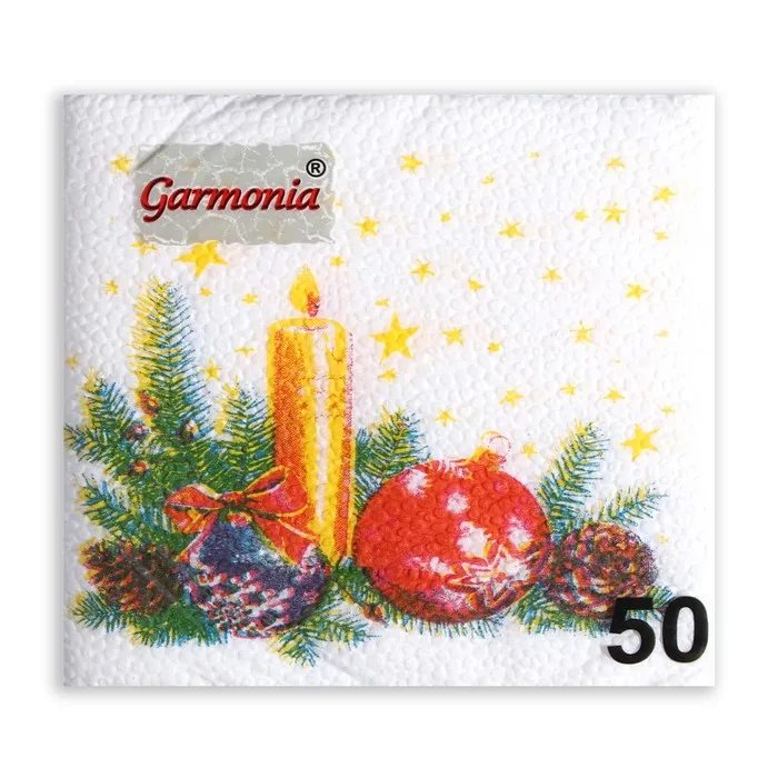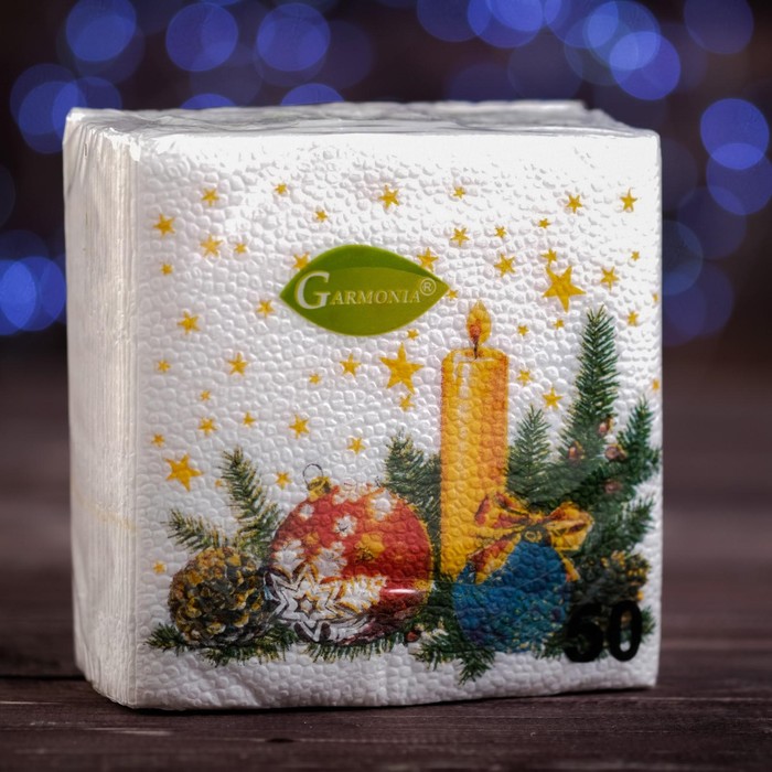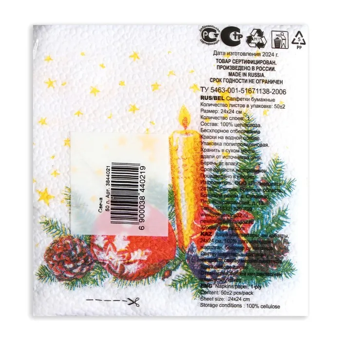 Салфетки новогодние бумажные «Свеча», 24×24 см, 50 шт. — Характеристики