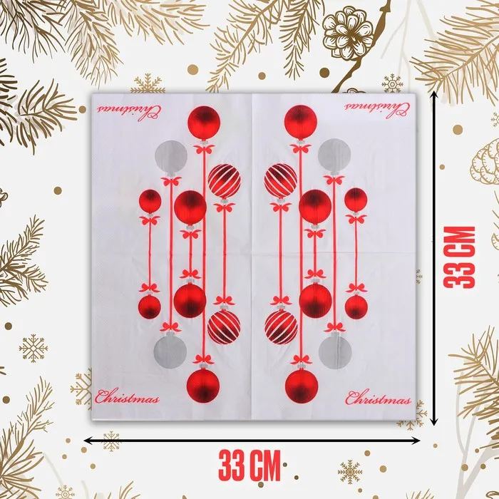 Салфетки новогодние бумажные «Украшения», 33×33 см, набор 20 шт — Характеристики