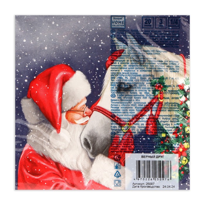 Салфетки новогодние бумажные «Верный друг», 3 слоя, 33×33 см, 20 шт. — Характеристики