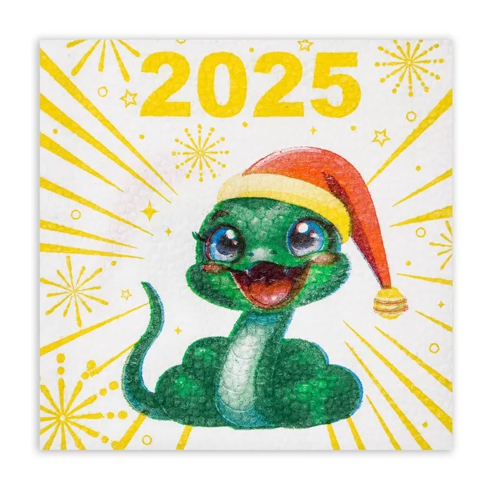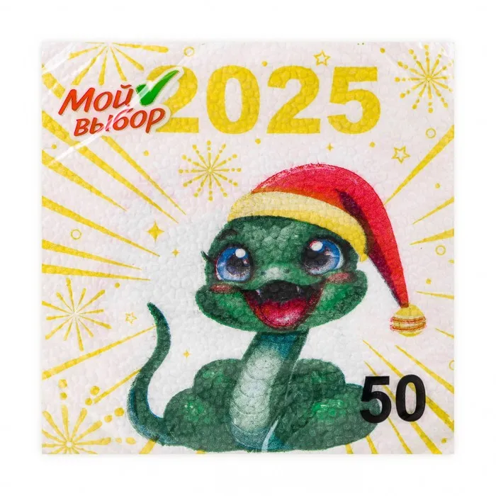 Новогодние бумажные салфетки бренда Мой выбор с рисунком "Весёлая Змея" - это отличное украшение для вашего праздничного новогоднего стола. Идеально подойдут как для сервировки, так и в качестве декора и украшения как в домашних условиях, так и на больших праздничных мероприятиях. Салфетки с уникальным рисунком будут хорошим подарком для родных и близких. Данные салфетки можно использовать так же для декупажа и коллажей.