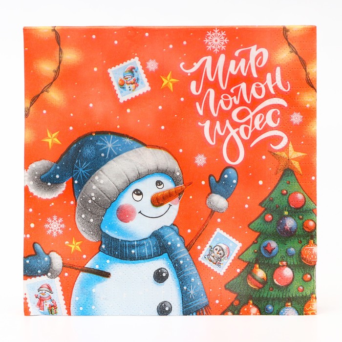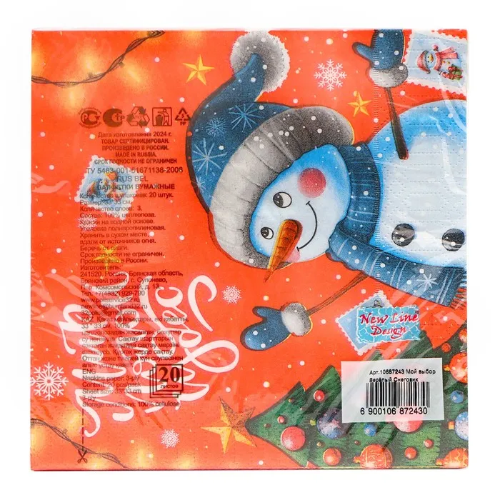 Новогодние бумажные салфетки с рисунком "Весёлый снеговик" - это отличное украшение для вашего праздничного новогоднего стола. Идеально подойдут как для сервировки, так и в качестве декора и украшения как в домашних условиях, так и на больших праздничных мероприятиях. Салфетки с уникальным рисунком будут хорошим подарком для родных и близких. Данные салфетки можно использовать так же для декупажа и коллажей.