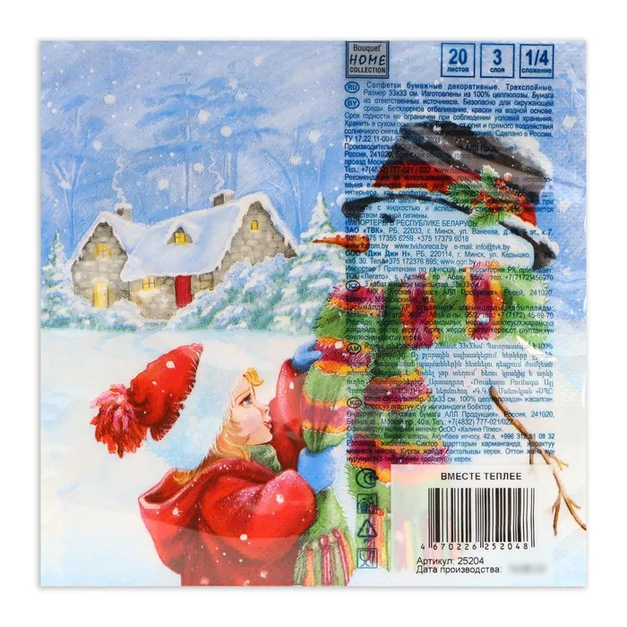 Салфетки новогодние бумажные «Вместе теплее», 3 слоя, 33×33 см, 20 шт. — Характеристики