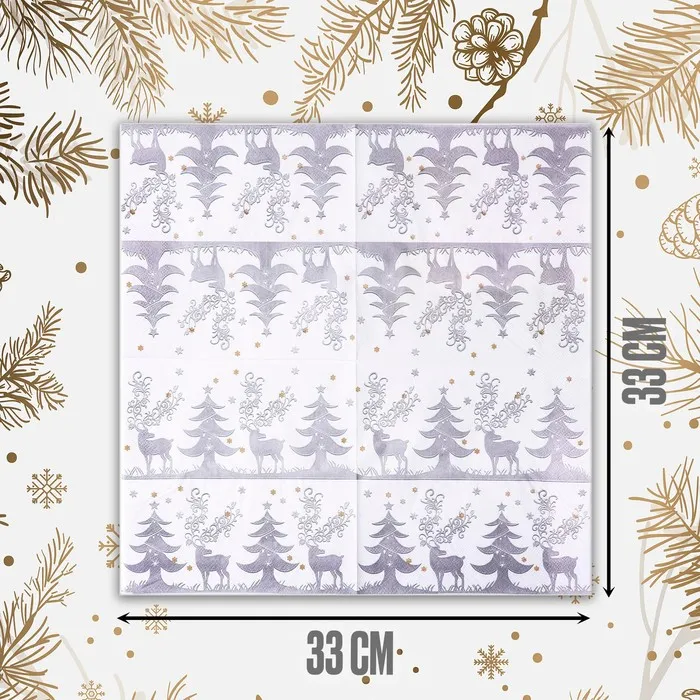Салфетки новогодние бумажные «Зимний лес», 33×33 см, набор 20 шт — Характеристики