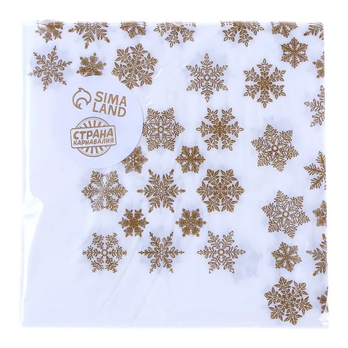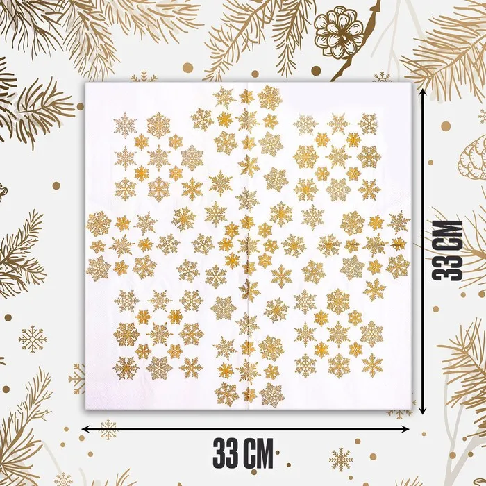 Салфетки новогодние бумажные «Золотые снежинки», 33×33 см, набор 20 шт — Характеристики