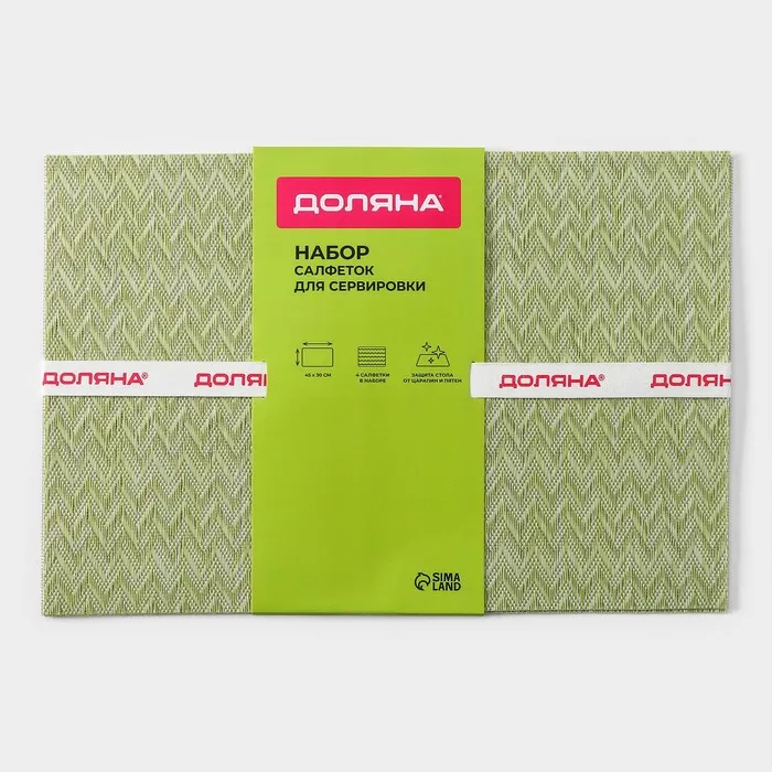 Салфетки сервировочные на стол Доляна, 4 шт., 45×30 см, зелёные — Характеристики
