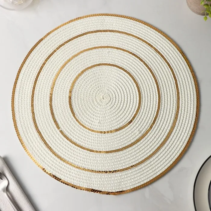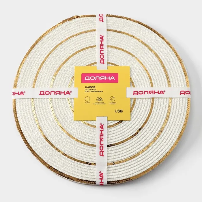 Салфетки сервировочные на стол Доляна, 4 шт., d=38 см, белые с золотым узором — Характеристики