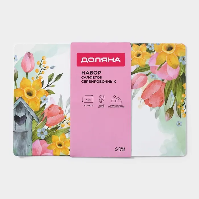 Позвольте себе порадовать свой стол с набором сервировочных салфеток «Акварель» от Доляна — настоящим искусством сервировки! Каждая из шести салфеток размером 43 х 28 см украшена ярким цветочным рисунком, который освежит ваш интерьер и создаст неповторимую атмосферу радости и уюта.