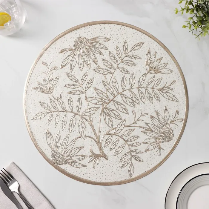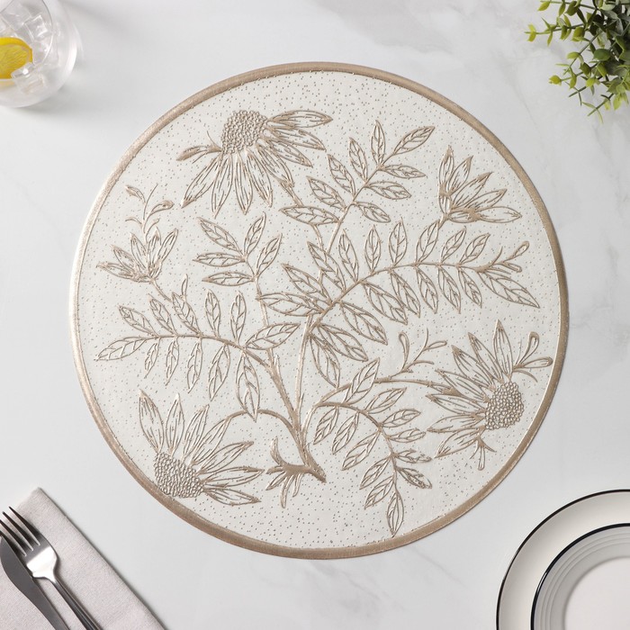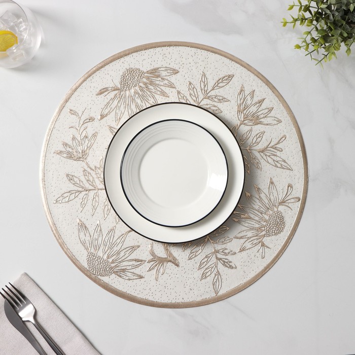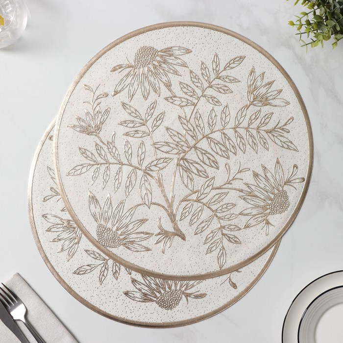 Салфетки сервировочные на стол Доляна «Ботаника», 2 шт, d=38 см, бежевые — Характеристики